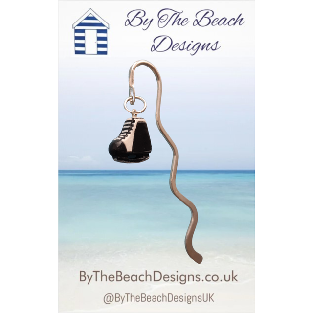 8.3cm silver plated bookmark with a handmade clay hockey skate charm